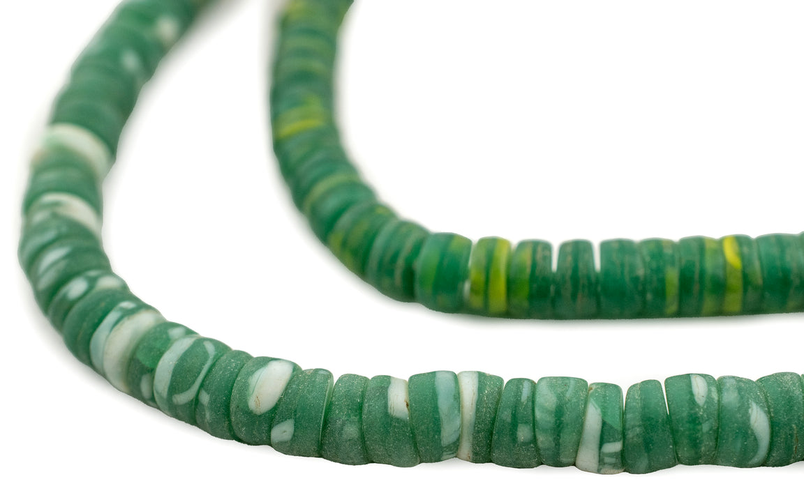 The unique look of kakamba beads is easily recognized among the beads of Africa. Originally produced in former Czechoslovakia, these beads are made using a special process whereby glass is pressed in a mold. Also known as prosser beads, these fun vintage African trade beads come in a variety of different colors and combinations. Each strand is unique. You will receive the exact strand shown in the photo. Bead and strand dimensions are approximate and may vary slightly. Get yours today!