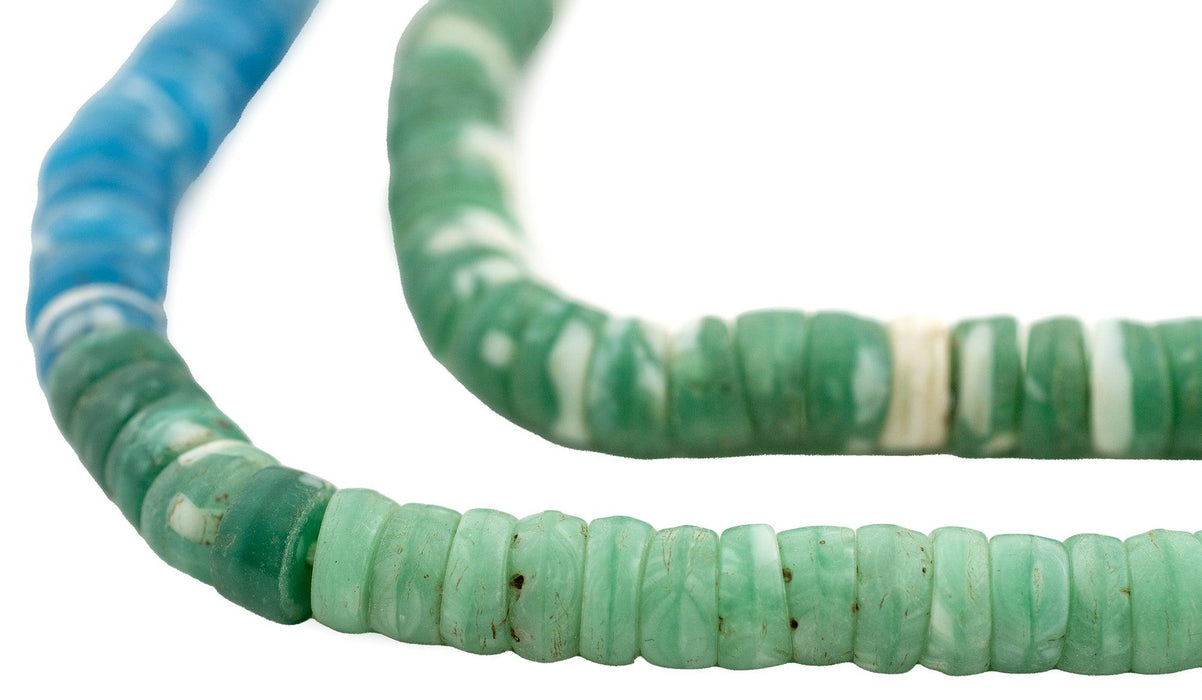 The unique look of kakamba beads is easily recognized among the beads of Africa. Originally produced in former Czechoslovakia, these beads are made using a special process whereby glass is pressed in a mold. Also known as prosser beads, these fun vintage African trade beads come in a variety of different colors and combinations. Each strand is unique. You will receive the exact strand shown in the photo. Bead and strand dimensions are approximate and may vary slightly. Get yours today!