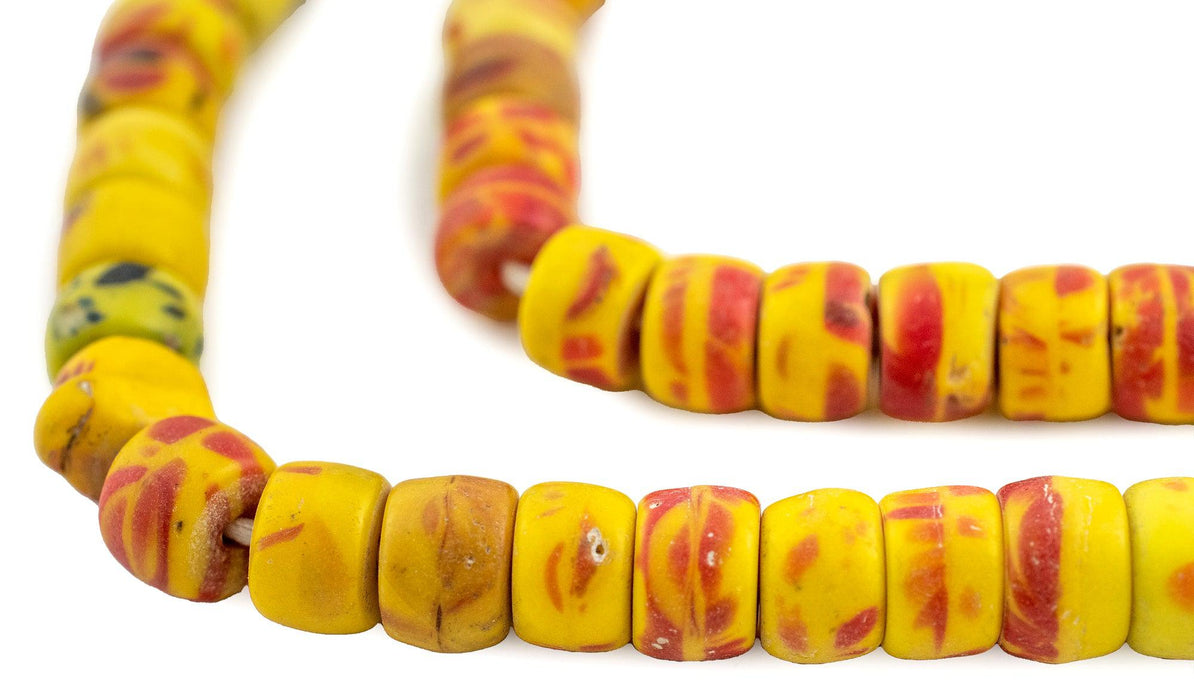 The unique look of kakamba beads is easily recognized among the beads of Africa. Originally produced in former Czechoslovakia, these beads are made using a special process whereby glass is pressed in a mold. Also known as prosser beads, these fun vintage African trade beads come in a variety of different colors and combinations. Each strand is unique. You will receive the exact strand shown in the photo. Bead and strand dimensions are approximate and may vary slightly. Get yours today!