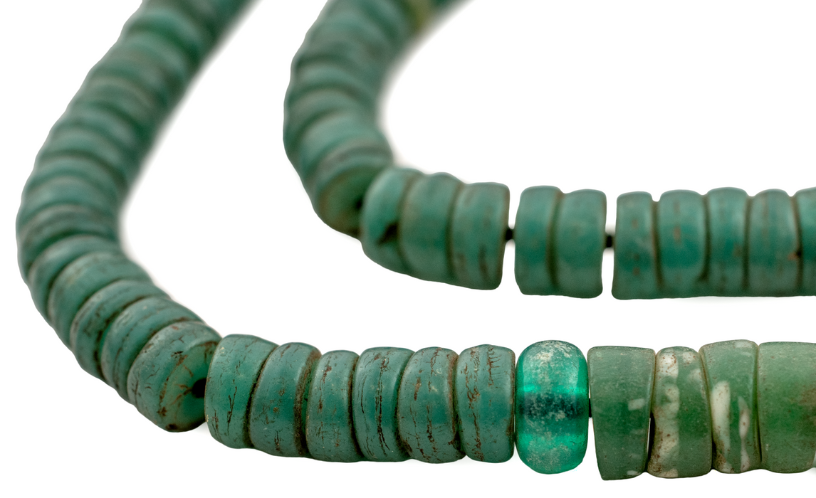 The unique look of Kakamba beads is easily recognized among the beads of Africa. Originally produced in former Czechoslovakia, these beads are made using a special process whereby glass is pressed in a mold. Also known as Prosser beads, these fun vintage African trade beads come in a variety of different colors and combinations. Each strand is unique. You will receive the exact strand shown in the photo. Bead and strand dimensions are approximate and may vary slightly. Get yours today!