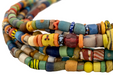 Great strand of assorted vintage Czech pressed glass beads and sandcast beads found in Ghana and Nigeria in West Africa. Some strand may also have a few Venetian beads or newer Ghanaian beads mixed in. Each strand measures approximately 28" long with beads ranging in size 1-15 x 7-15mm.