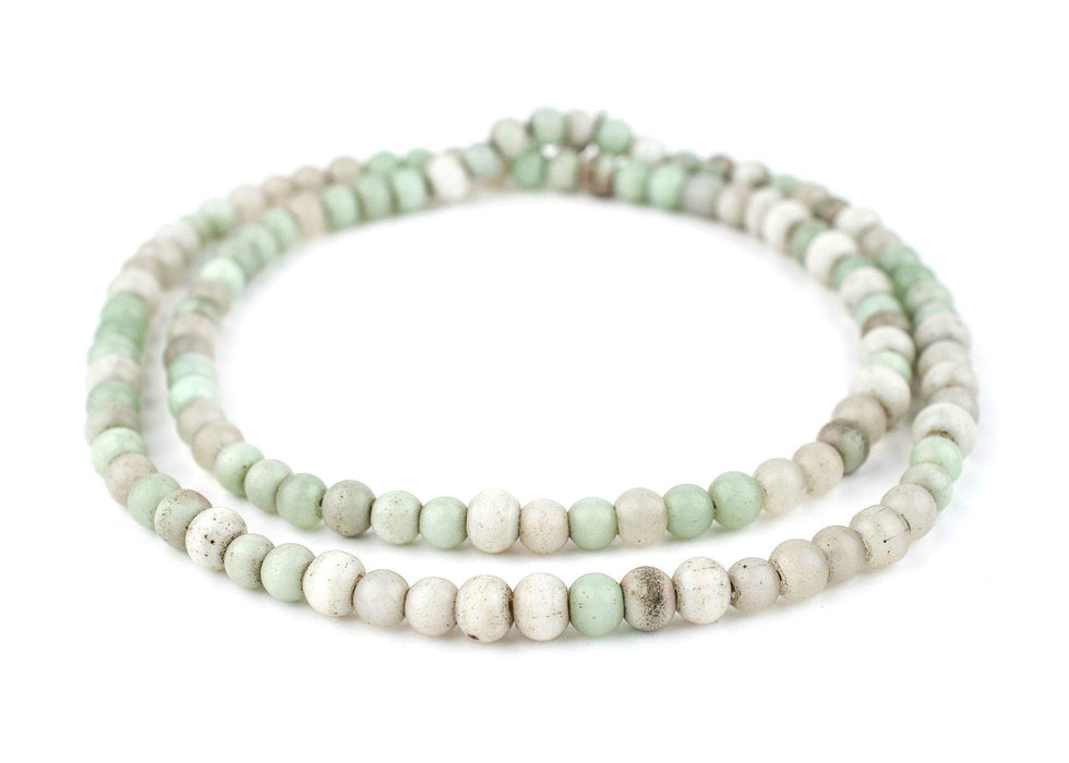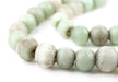 Old Padre beads come in a number of varieties however padres in this moon green color are difficult to find. The age of the glass is apparent in the unique imperfections that come with time. Old padre beads such as these are found in Ethiopia, East Africa. Originally European-made, they were traded in Africa the late 1800 early 1900's. Each beads measures approximately 7 x 8-9mm. Each strand is approximately 33 inches in length. Limited supply available.