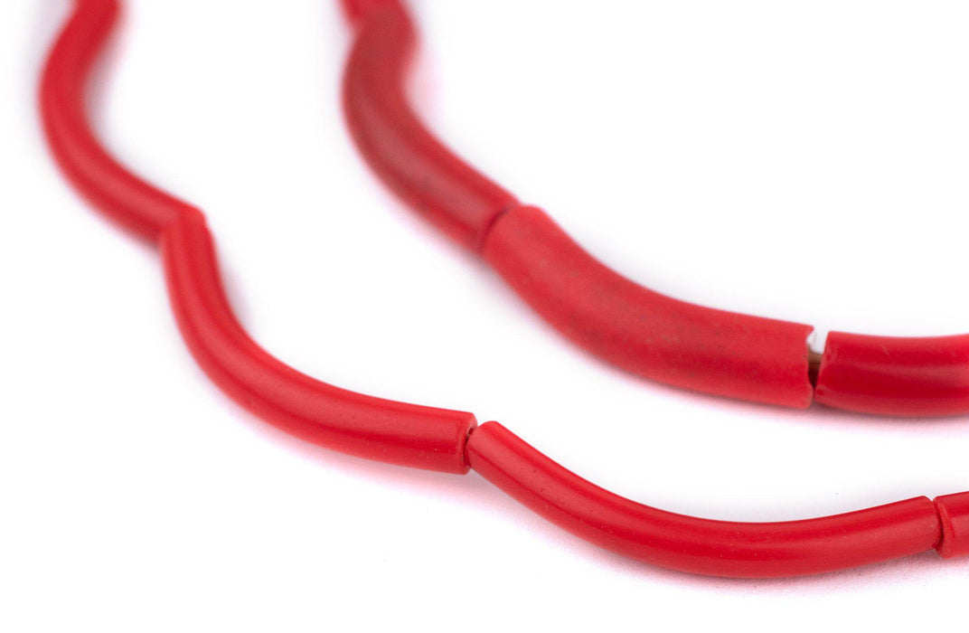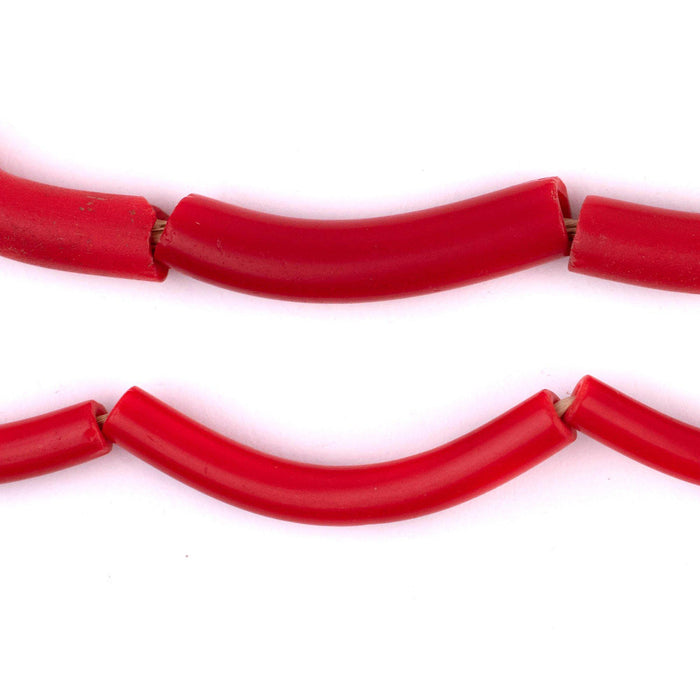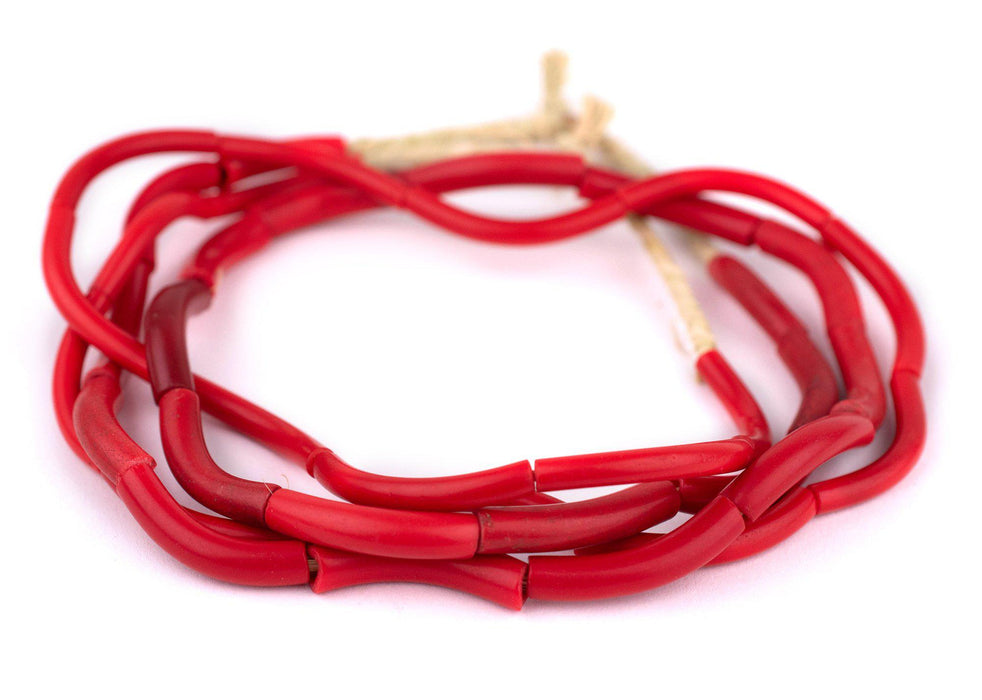 Take a look at this unusual find! These curvy tube-shaped beads take their name from their uncanny resemblance to the macaroni pasta! Beads such as these were originally made in the former Czechoslovakia and traded to West Africa where they can be found today. Each strand measures about 30" in length with individual beads measuring 29-38mm from hole to hole and 5-7mm in diameter. These are vintage beads and have had passed through many hands. A few beads may be chipped or have imperfections due to age.