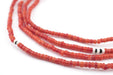 Beautiful strand of vintage red glass seed beads from Nigeria. Each bead measures approximately 2 x 3mm with strand length of 25". Some variation in individual beads is shown as pictured. Two strands pictured. Each strand sold individually. Use these as spacers or mix and match colors to express your unique style! Limited supply available.