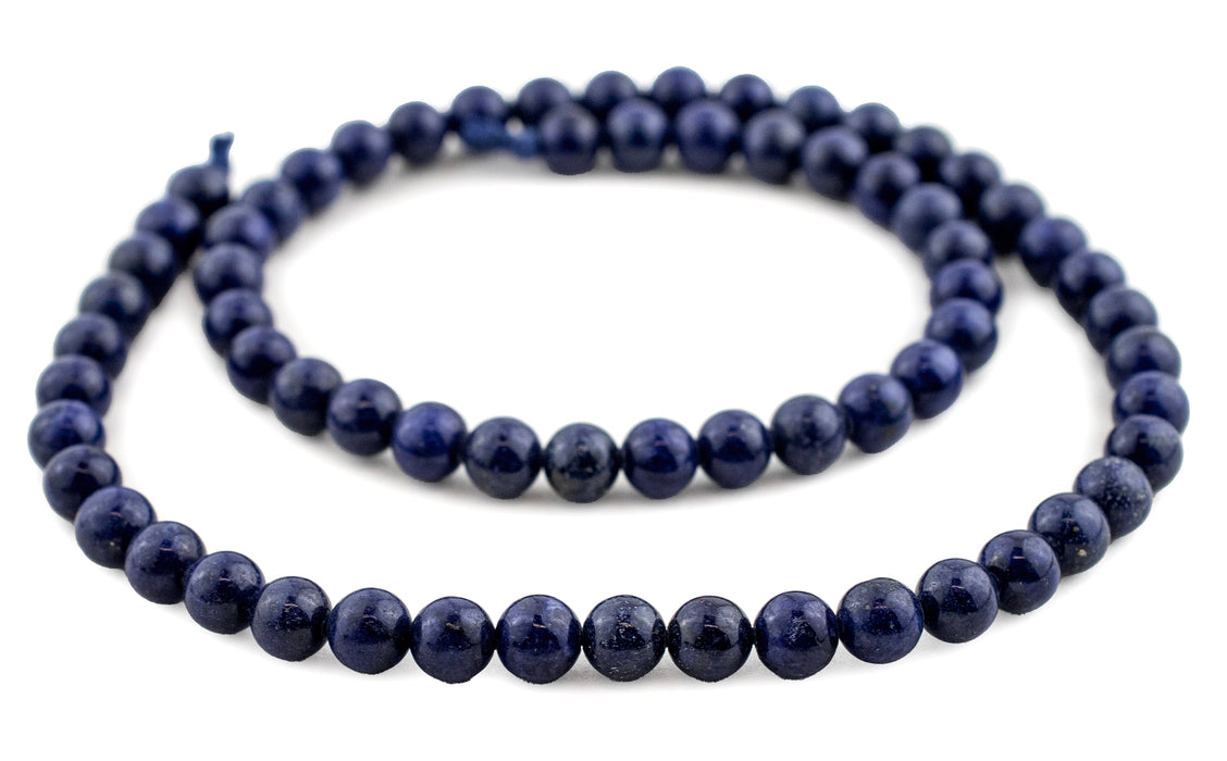 Indulge your eyes in these exquisite lapis lazuli beads, sourced from a premium vintage stock. For centuries, lapis has been treasured for its deep, rich blue hues, making it a sought-after gemstone for jewelry and art. These beautiful beads measure approximately 6 x 6mm, with hole sizes of about <1mm. Each strand is approximately 16" long.