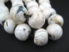 Looking for some special beads? These are them! These smooth beads have been inlaid with crushed coral and turquoise stone to fill small gaps and crevices in the shell. The unique finish of these beads give them a truly unique feel. Look carefully and you can appreciate the detail. These beads were probably originally from a strand of prayer beads and some strands may include a centerpiece bead as well. Each strand measures approximately 19" long, and each bead is about 14mm wide by 15-19mm in diameter. Each strand is unique and may differ slightly from picture.