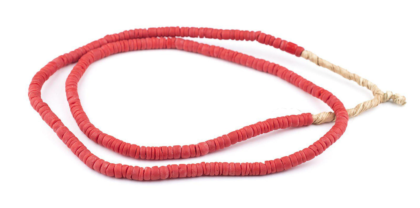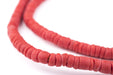 These beautiful red powder glass beads, also known as red sandcast, are vintage beads from West Africa. Powder glass beads in this unique sliced disk shape are more difficult to find compared to their cylindrical counter-parts. Each bead measures approximately 6-7mm in diameter, with hole size of 2-3mm. Limited supply available.