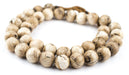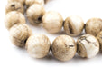 Admire the detail of these unusual beads fashioned in a round-like shape from the natural shell of the ocean conch. The material for these unique beads is said to have been traded from the Bay of Bengel north towards the Himalayan mountains. No two beads are alike however beads measure approximately 15-16 x 16mm with hole size of 2-3mm. The length of strand measures about 26". Each strand is unique and may vary slightly from photo. Beads may be used in your own special jewelry design however the beads have been nicely strung and the strand may also easily be worn as a necklace.