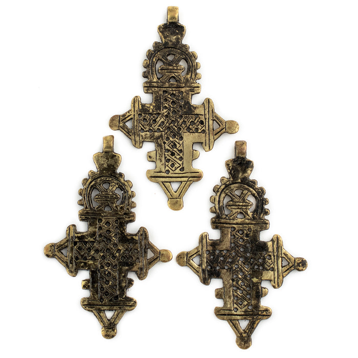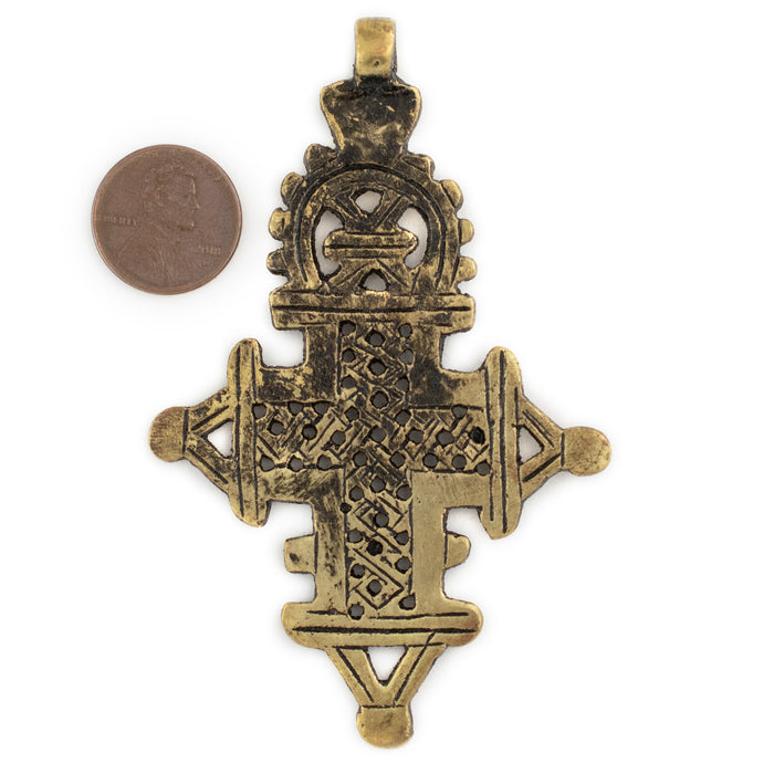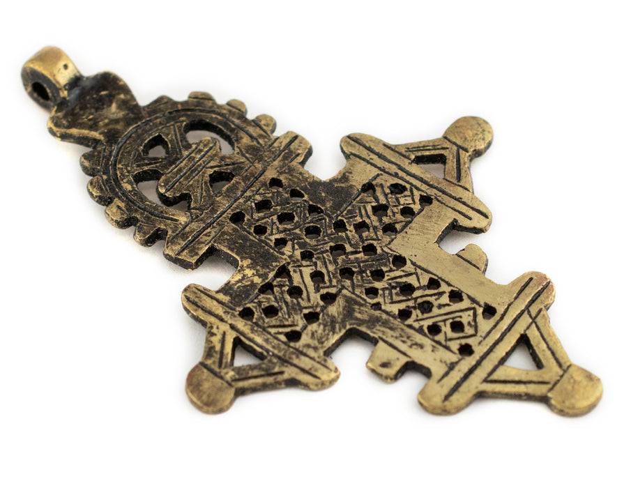 Vintage-Style Brass Ethiopian Coptic Cross Pendant (Large)