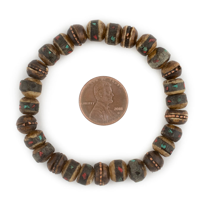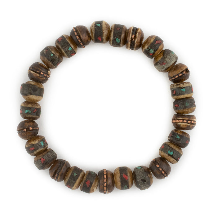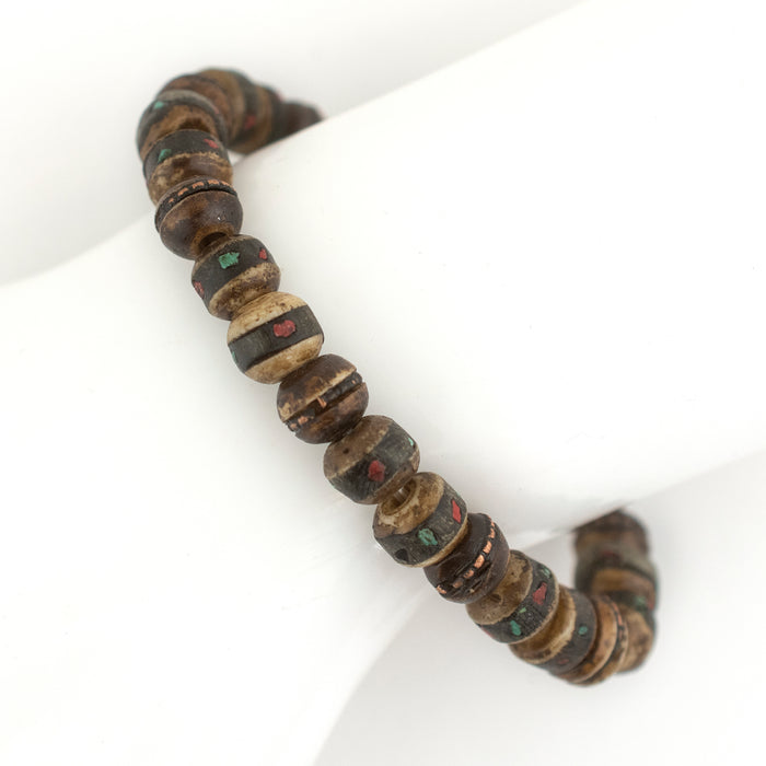 Malas are traditionally used in Buddhist culture as a part of the practice of meditation, however, today Malas are enjoyed by people around the world looking to gain mental clarity and live in the present. Our collection of Mala bracelets are handmade in Nepal using traditional inlaid beads. These beads are hand carved, inlaid with coral and turquoise style pieces, and strung approximately 28 beads per 7 inch bracelet. Available in over 15+ colors, choose your favorites to build your own unique stack! Beads may also be repurposed into your own unique jewelry designs. Multiple bracelets may be pictured, however each bracelet is sold individually.
