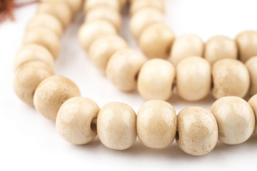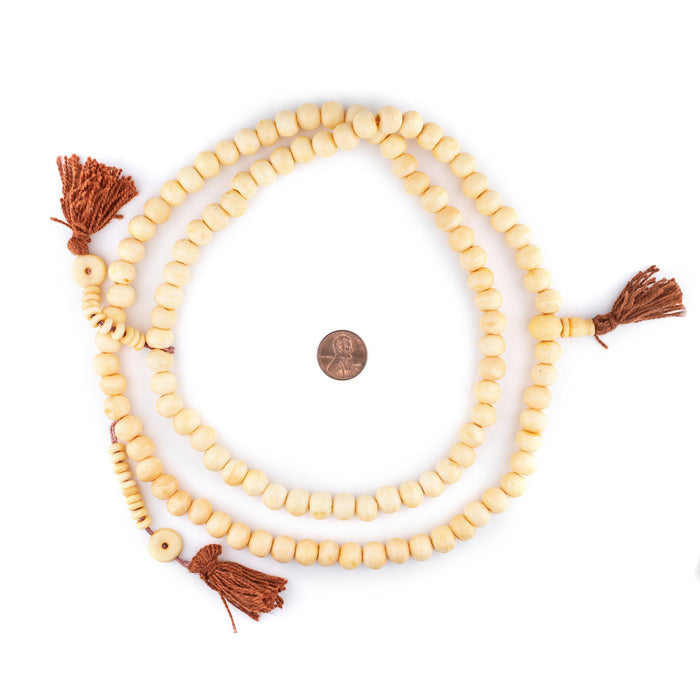 These high quality Malas each contain 108 rustic beads made of recycled bone. Each bead measures approximately 8 x 10mm, with a hole size of 2mm. The strand measures approximately 34" in length, and can either be used as is, or re-beaded into your own creations! Due to handmade nature of beads, bead color and tassel color may vary slightly from photo. Some strands may have counters which can be easily removed.