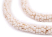 These vintage Czech beads derive their name from their resemblance in the cross section to the shape of a flower. Like Prosser beads, this design was likely produced by the pressed glass method for export during the mid-20th century. The flower bead is a rare shape and the white colored variant such as this is harder to find. Suitable for collectors or special jewelry designs. Limited supply.