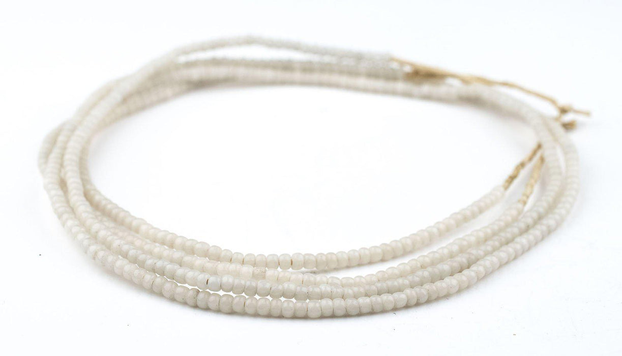 Beautiful strand of vintage white glass beads from Ghana. Each bead measures approximately 3 x 4mm with strand length of 27". Some variation in individual beads is shown as pictured. Use these as spacers or mix and match colors to express your unique style!