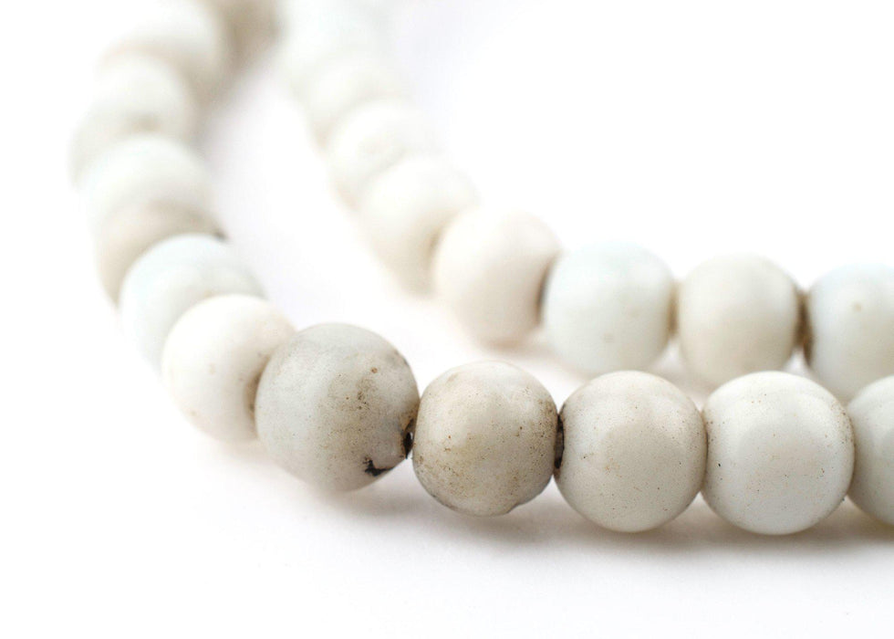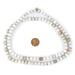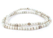 Old Padre beads come in a number of varieties. In these special white padres, the age of the glass is apparent in the unique imperfections that come with time. Old padre beads such as these are found in Ethiopia, East Africa. Originally European-made, they were traded in Africa the late 1800 early 1900's. Each beads measures approximately 7 x 8mm. Each strand measures approximately 28 inches in length. Get yours today.