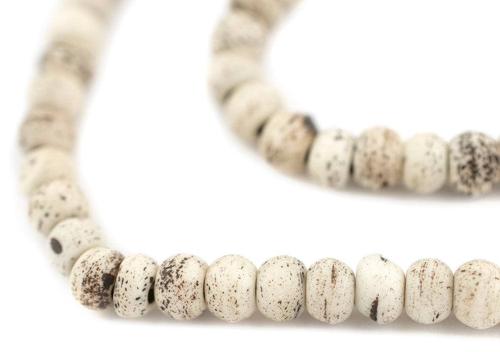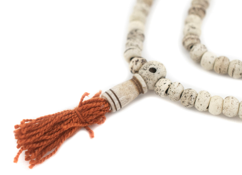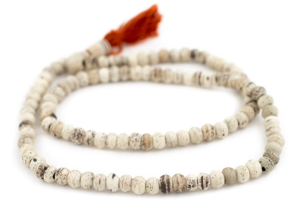 This strand of rustic grey bone beads comes from Nepal. Pay attention and you will notice that each bead is 100% unique and has its own character. Each bead measures approximately 5 x 6mm with a hole size of approximately 1mm. The beads are strung in traditional 108-bead mala form. You will receive one full 21" strand with each purchase. Get yours today!
