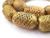 Take a look at these cylinder-shaped Ghana Brass Trade Beads from Africa. Each bead is made individually through the "Lost Wax process" technique. This strand is about 26", with beads measuring approximately 30-35 x 24mm. Each strand may have 1-2 beads that are less than perfect and may vary slightly from strand pictured.