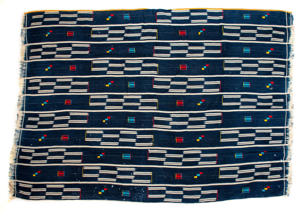 Admire the rich beauty of this authentic African Indigo Cloth. Woven from cotton, handmade textiles such as this play a central role in the artistic tradition of many West African countries where they are traditionally worn as clothing. Indigo cloths can be found in a number of African countries including Ghana, Togo, and the Ivory Coast. Look carefully and you will see that each piece has its own unique and distinctive pattern. This soft and versatile fabric can be used for all kinds of unique design projects. Use it as a table cloth, wall hanging, or simply as a colorful accent for your favorite room. Each cloth measures approximately 40-48 x 58-65". Each piece is truly one of a kind. You will receive the exact cloth shown in the photograph!