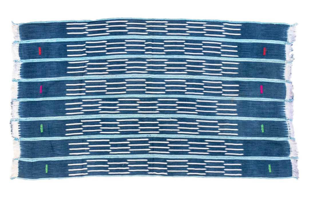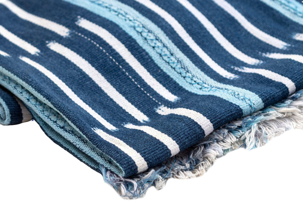 Admire the rich beauty of this authentic African Indigo Cloth. Woven from cotton, handmade textiles such as this play a central role in the artistic tradition of many West African countries where they are traditionally worn as clothing. Indigo cloths can be found in a number of African countries including Ghana, Togo, and the Ivory Coast. Look carefully and you will see that each piece has its own unique and distinctive pattern. This soft and versatile fabric can be used for all kinds of unique design projects. Use it as a table cloth, wall hanging, or simply as a colorful accent for your favorite room. Each cloth measures approximately 40-48 x 58-65". Each piece is truly one of a kind. You will receive the exact cloth shown in the photograph!