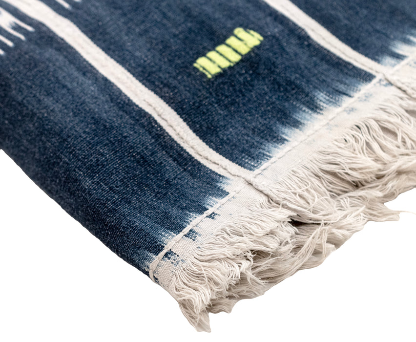 Admire the rich beauty of this authentic African Indigo Cloth. Woven from cotton, handmade textiles such as this play a central role in the artistic tradition of many West African countries where they are traditionally worn as clothing. Indigo cloths can be found in a number of African countries including Ghana, Togo, and the Ivory Coast. Look carefully and you will see that each piece has its own unique and distinctive pattern. This soft and versatile fabric can be used for all kinds of unique design projects. Use it as a table cloth, wall hanging, or simply as a colorful accent for your favorite room. Each cloth measures approximately 40-48 x 58-65". Each piece is truly one of a kind. You will receive the exact cloth shown in the photograph!