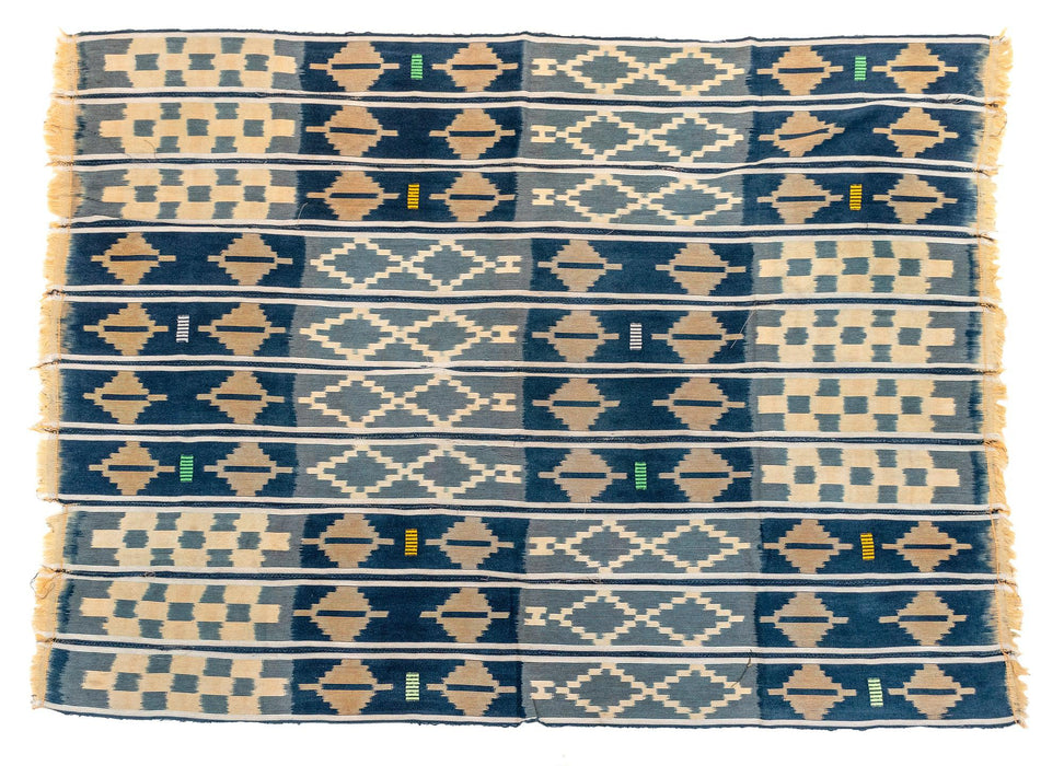 Admire the rich beauty of this authentic African Indigo Cloth. Woven from cotton, handmade textiles such as this play a central role in the artistic tradition of many West African countries where they are traditionally worn as clothing. Indigo cloths can be found in a number of African countries including Ghana, Togo, and the Ivory Coast. Look carefully and you will see that each piece has its own unique and distinctive pattern. This soft and versatile fabric can be used for all kinds of unique design projects. Use it as a table cloth, wall hanging, or simply as a colorful accent for your favorite room. Each cloth measures approximately 40-48 x 58-65". Each piece is truly one of a kind. You will receive the exact cloth shown in the photograph!