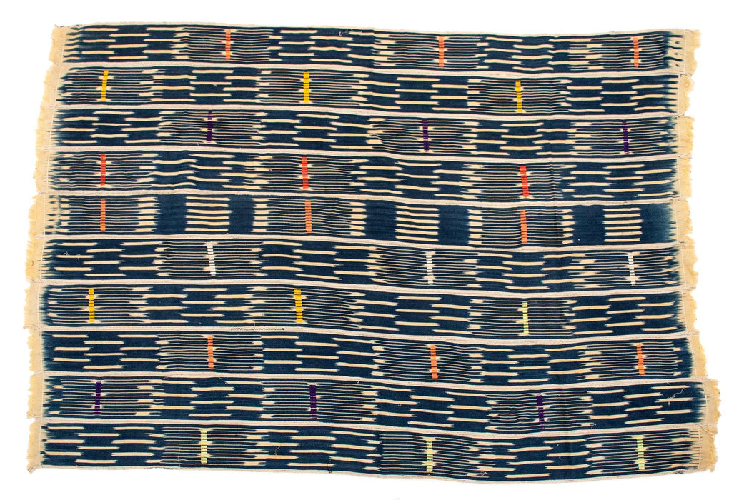 Admire the rich beauty of this authentic African Indigo Cloth. Woven from cotton, handmade textiles such as this play a central role in the artistic tradition of many West African countries where they are traditionally worn as clothing. Indigo cloths can be found in a number of African countries including Ghana, Togo, and the Ivory Coast. Look carefully and you will see that each piece has its own unique and distinctive pattern. This soft and versatile fabric can be used for all kinds of unique design projects. Use it as a table cloth, wall hanging, or simply as a colorful accent for your favorite room. Each cloth measures approximately 40-48 x 58-65". Each piece is truly one of a kind. You will receive the exact cloth shown in the photograph!