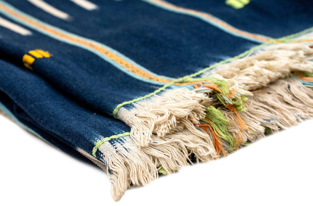Admire the rich beauty of this authentic African Indigo Cloth. Woven from cotton, handmade textiles such as this play a central role in the artistic tradition of many West African countries where they are traditionally worn as clothing. Indigo cloths can be found in a number of African countries including Ghana, Togo, and the Ivory Coast. Look carefully and you will see that each piece has its own unique and distinctive pattern. This soft and versatile fabric can be used for all kinds of unique design projects. Use it as a table cloth, wall hanging, or simply as a colorful accent for your favorite room. Each cloth measures approximately 40-48 x 58-65". Each piece is truly one of a kind. You will receive the exact cloth shown in the photograph!