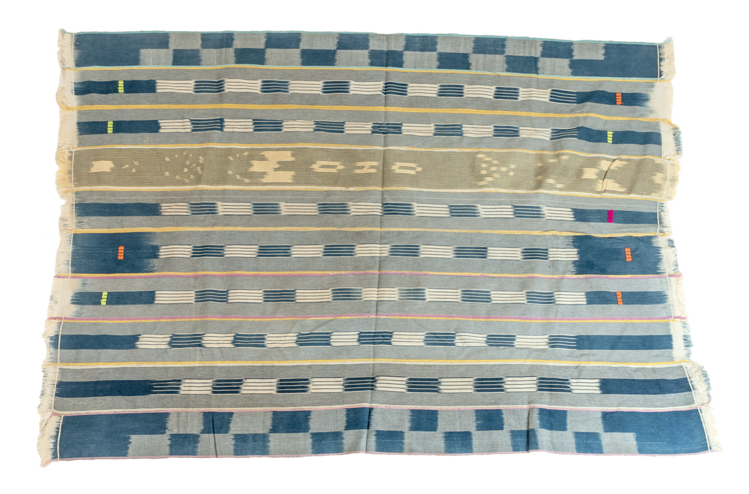 Admire the rich beauty of this authentic African Indigo Cloth. Woven from cotton, handmade textiles such as this play a central role in the artistic tradition of many West African countries where they are traditionally worn as clothing. Indigo cloths can be found in a number of African countries including Ghana, Togo, and the Ivory Coast. Look carefully and you will see that each piece has its own unique and distinctive pattern. This soft and versatile fabric can be used for all kinds of unique design projects. Use it as a table cloth, wall hanging, or simply as a colorful accent for your favorite room. Each cloth measures approximately 40-48 x 58-65". Each piece is truly one of a kind. You will receive the exact cloth shown in the photograph!