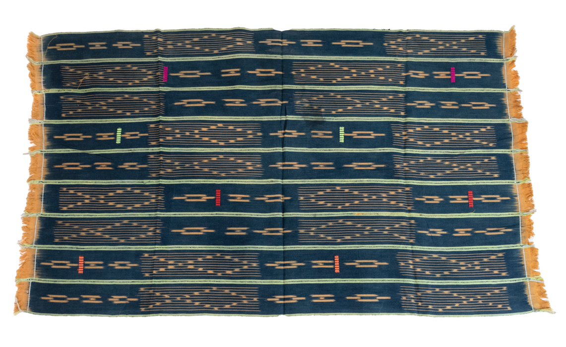 Admire the rich beauty of this authentic African Indigo Cloth. Woven from cotton, handmade textiles such as this play a central role in the artistic tradition of many West African countries where they are traditionally worn as clothing. Indigo cloths can be found in a number of African countries including Ghana, Togo, and the Ivory Coast. Look carefully and you will see that each piece has its own unique and distinctive pattern. This soft and versatile fabric can be used for all kinds of unique design projects. Use it as a table cloth, wall hanging, or simply as a colorful accent for your favorite room. Each cloth measures approximately 40-48 x 58-65". Each piece is truly one of a kind. You will receive the exact cloth shown in the photograph!