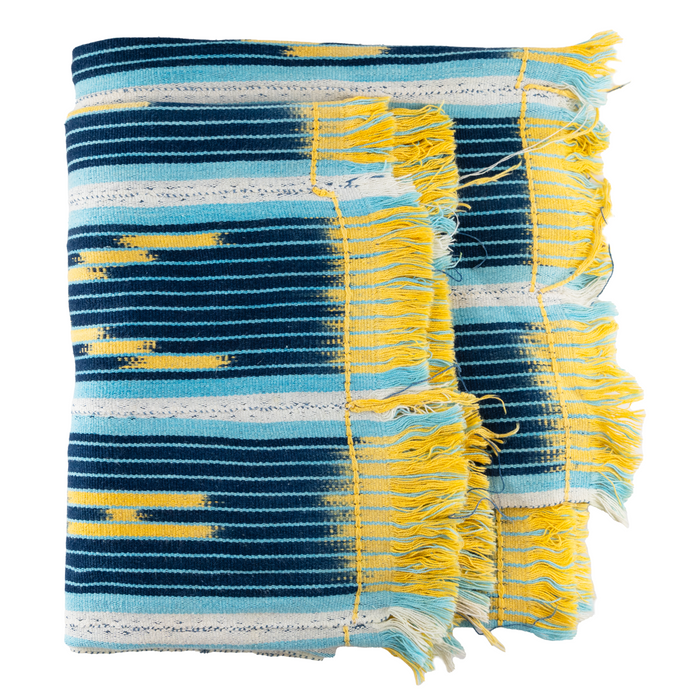 Admire the rich beauty of this authentic African Indigo Cloth. Woven from cotton, handmade textiles such as this play a central role in the artistic tradition of many West African countries where they are traditionally worn as clothing. Indigo cloths can be found in a number of African countries including Ghana, Togo, and the Ivory Coast. Look carefully and you will see that each piece has its own unique and distinctive pattern. This soft and versatile fabric can be used for all kinds of unique design projects. Use it as a table cloth, wall hanging, or simply as a colorful accent for your favorite room. Each cloth measures approximately 40-48 x 58-65". Each piece is truly one of a kind. You will receive the exact cloth shown in the photograph!