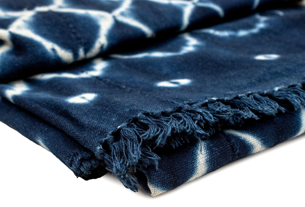 Admire the rich blue beauty of this authentic African Indigo Cloth. Woven from cotton, handmade textiles such as this play a central role in the artistic tradition of many West African countries where they are traditionally worn as clothing. Indigo cloths can be found in a number of African countries including Ghana, Togo, and the Ivory Coast. Look carefully and you will see that each piece has its own unique and distinctive pattern. This soft and versatile fabric can be used for all kinds of unique design projects. Use it as a table cloth, wall hanging, or simply as a colorful accent for your favorite room. Cloths vary in size however they generally measure between 43-51 inches wide x 63-71 inches long. Each piece is truly one of a kind. You will receive the exact cloth shown in the photograph!
