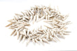 Take a look at these beautiful West African shells often referred to as "porcupine shells." Each one of these special gems was hand collected from the shores of Ghana, then drilled into a bead and strung on a cord. This shape of sea shell has become particularly hard to find in bead form, as those who once gathered them are no longer continuing the tradition. Each shell measures approximately 23-44 x 4-10mm. With a long strand like this, you could use each shell as a pendant and make over 100 individual necklaces! Please note that due to the fragile nature of sea shells, some shells may be imperfect and/or cracked. Limited supply available.