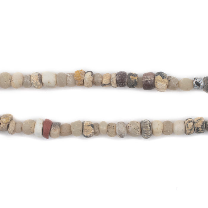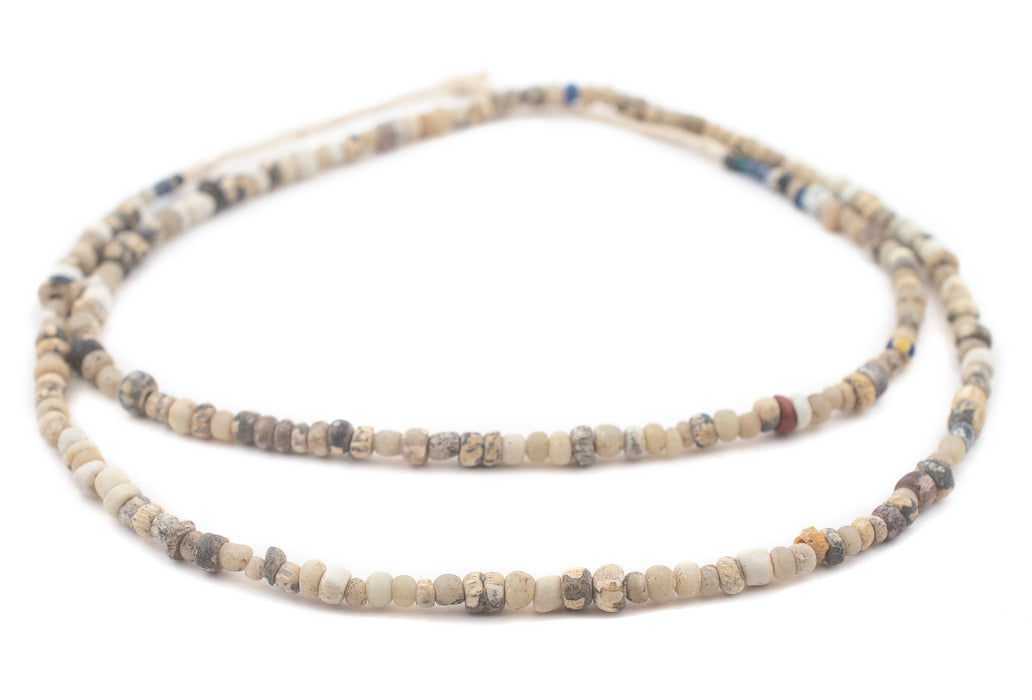 These authentic Djenne beads derive their name from the ancient city in Mali where they are found. Also known locally as Nila beads, they are said to be made of ancient excavated glass and are centuries old. The exact provenance of these beads is not known but it is believed that they may be possibly roman. Djenne beads are a more rare variety of African bead and are found in several colors including white, black, yellow, green, and blue. Each bead measures approximately 2-6 x 2-6mm. Each strand is unique and may vary slightly from strand pictured. Bead count is approximate. Strand length varies depending on whether there is a wrap at the top or not but the bead count should be more or less the same for both variations. Please let us know in advance if you have any specific requirements.