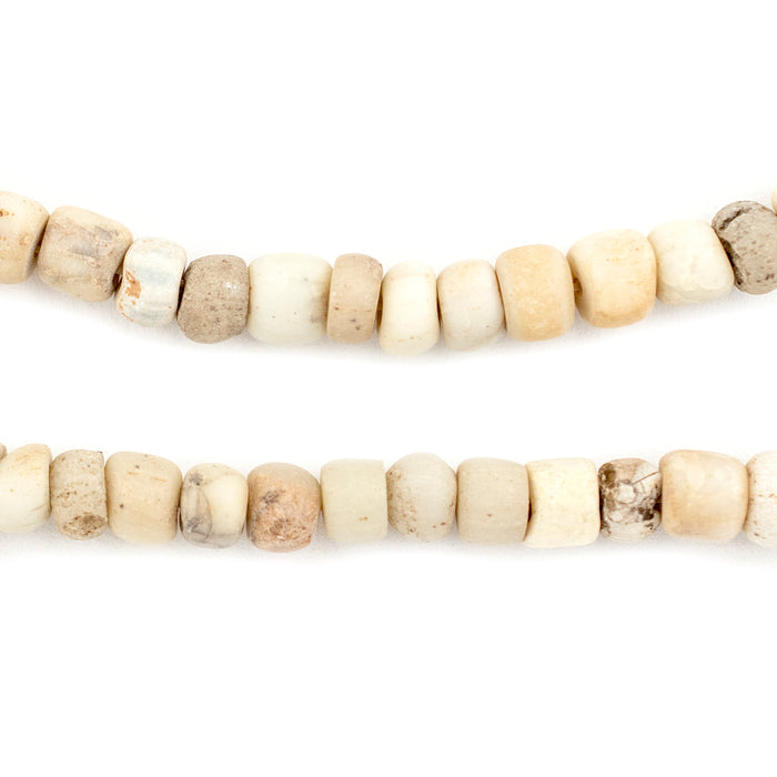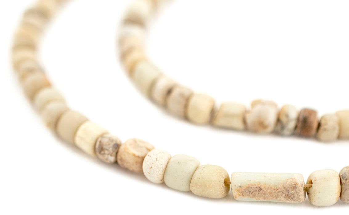 These authentic Djenne beads derive their name from the ancient city in Mali where they are found. Also known locally as Nila beads, they are said to be made of ancient excavated glass and are centuries old. The exact provenance of these beads is not known but it is believed that they may be possibly roman. Djenne beads are a more rare variety of African bead and are found in several colors including white, black, yellow, green, and blue. Each bead measures approximately 2-17 x 4-7mm. You will receive the exact strand pictured. Note that while the material is said to be of old, possibly ancient origin, the precise age of the beads has not been independently verified through advanced dating techniques.