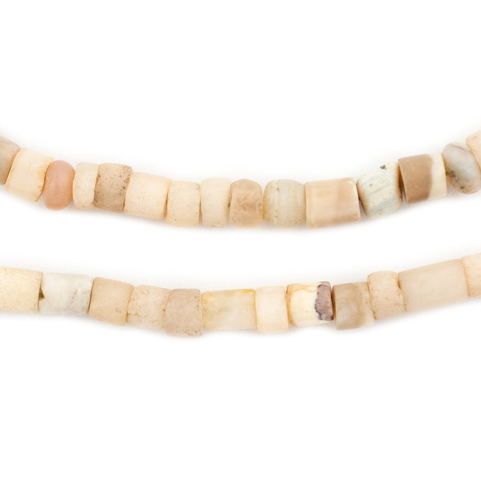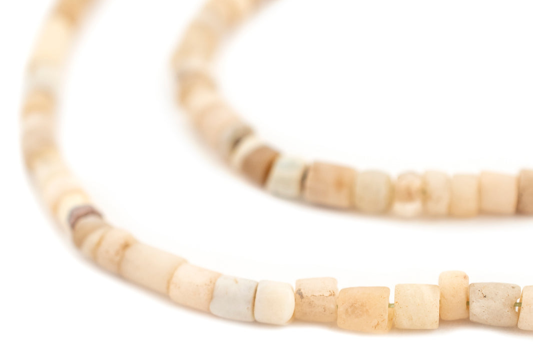 These authentic Djenne beads derive their name from the ancient city in Mali where they are found. Also known locally as Nila beads, they are said to be made of ancient excavated glass and are centuries old. The exact provenance of these beads is not known but it is believed that they may be possibly roman. Djenne beads are a more rare variety of African bead and are found in several colors including white, black, yellow, green, and blue. Each bead measures approximately 2-17 x 4-7mm. You will receive the exact strand pictured. Note that while the material is said to be of old, possibly ancient origin, the precise age of the beads has not been independently verified through advanced dating techniques.