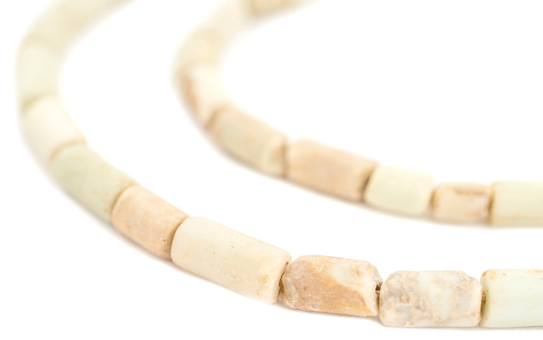 These authentic Djenne beads derive their name from the ancient city in Mali where they are found. Also known locally as Nila beads, they are said to be made of ancient excavated glass and are centuries old. The exact provenance of these beads is not known but it is believed that they may be possibly roman. Djenne beads are a more rare variety of African bead and are found in several colors including white, black, yellow, green, and blue. Each bead measures approximately 2-17 x 4-7mm. You will receive the exact strand pictured. Note that while the material is said to be of old, possibly ancient origin, the precise age of the beads has not been independently verified through advanced dating techniques.