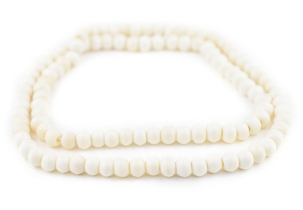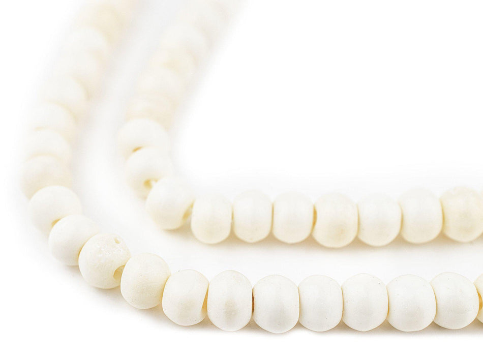 These natural white bone beads are made beads are made from the recycled bone of the water buffalo. Each bead has been individually cut and polished by an artisan in mountainous Nepal. These beads are great for all kinds of jewelry projects. Use them to make a Mala necklace or your new favorite bracelet. Each strand has about 100 beads measuring 8-9mm in diameter with a 2mm hole size.
