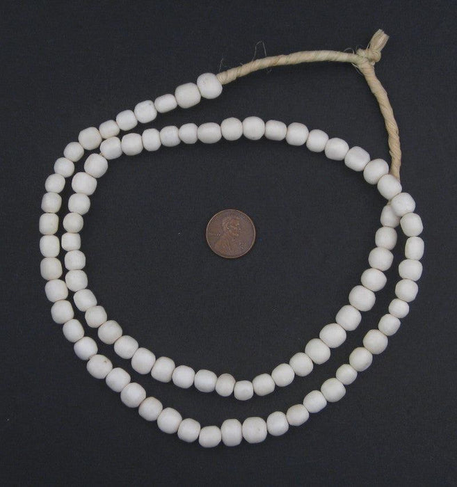Checkout these beautiful small white bone beads from Africa shaped in a hard-to-find roundish size! Each each long strand measures approximately 30" in length, and the beads measure about 7-9mm in diameter. Each bead has a unique shape. Another great strand of beads to add to your collection!