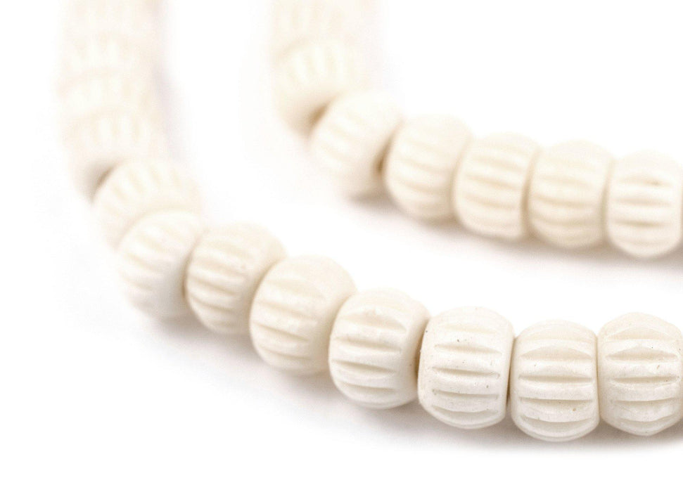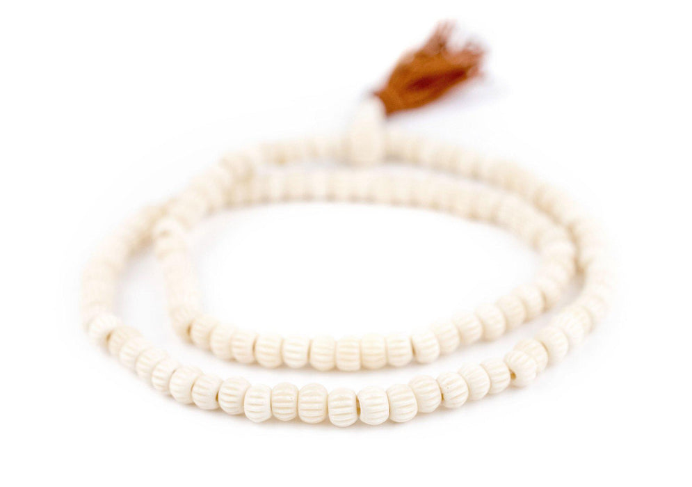 White Carved Chevron Bone Mala Beads (6mm)