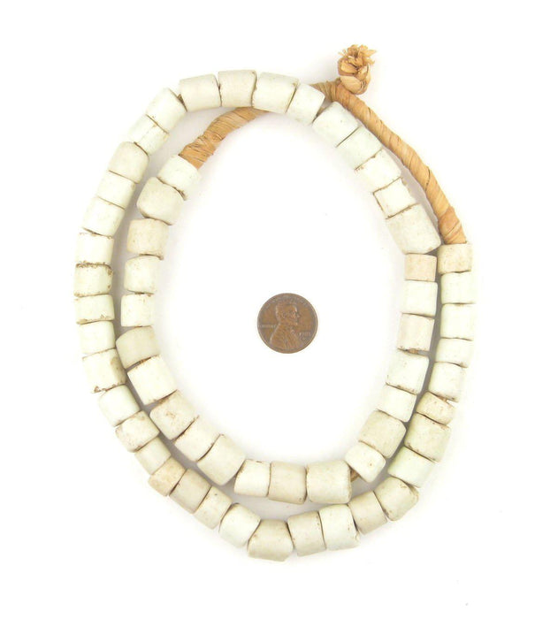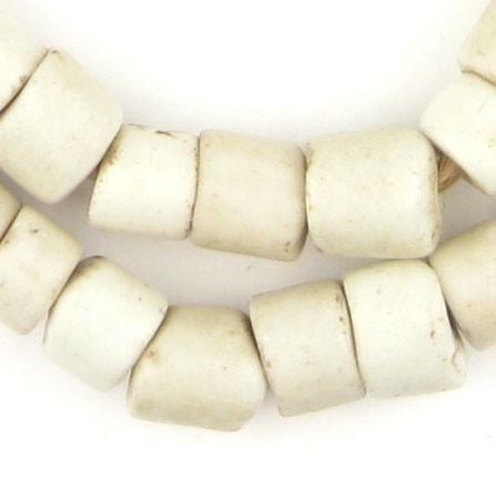 These old white Goomba Cylinder beads were used for the African Trade in the 1900's. They are made from European glass and measure approximately 7-14mm wide by 11-14mm diameter. Some beads may be larger. This size is hard to find!