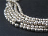Take a look at this strand of white metal melon beads. The strand is 22" long, with beads measuring approximately 2mm in both dimensions. Two strands shown in picture however each strand is sold individually. These make great spacers when you need small beads!