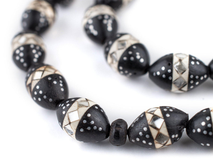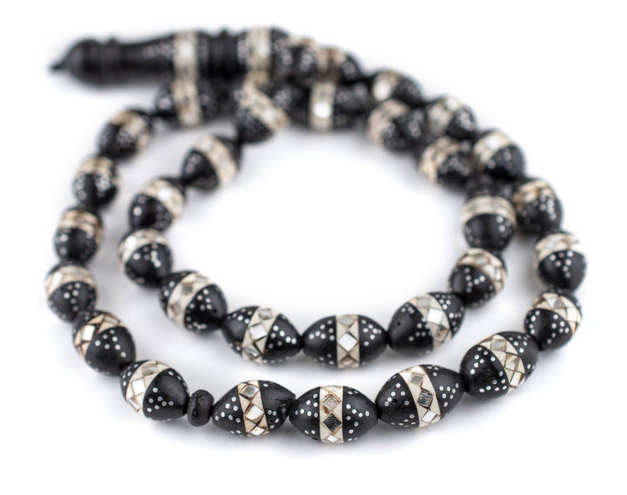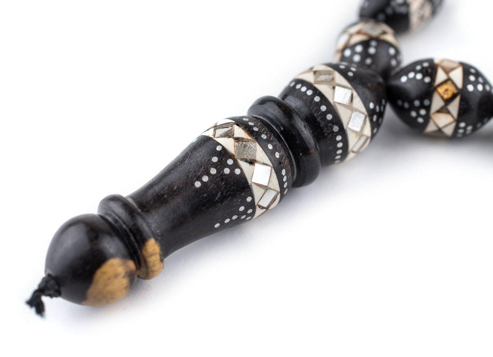 White Mosaic Inlaid Ebony Arabian Prayer Beads (14x9mm)