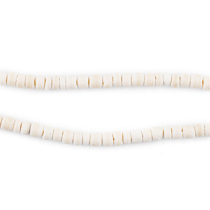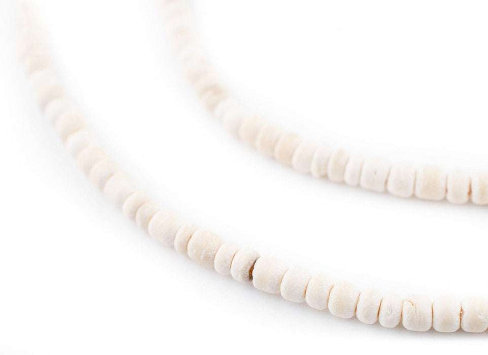 These small white wooden beads are handmade using repurposed coconut wood. Coconut wood is an eco-friendly and sustainable material for beading. Each bead measures approximately 2-4 x 3-4mm in size, with a hole size of approximately 1mm. Each strand measures approximately 16 inches length. Multiple strands pictured. Each strand sold individually. Get yours today.