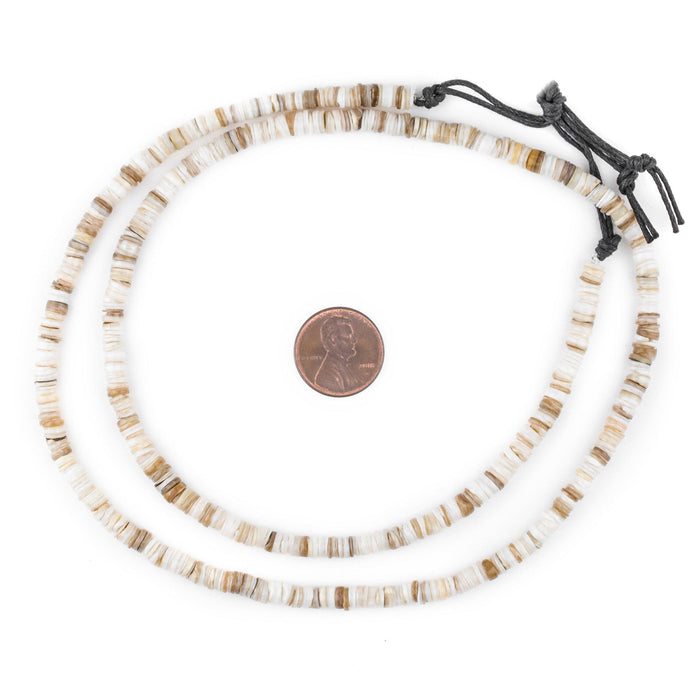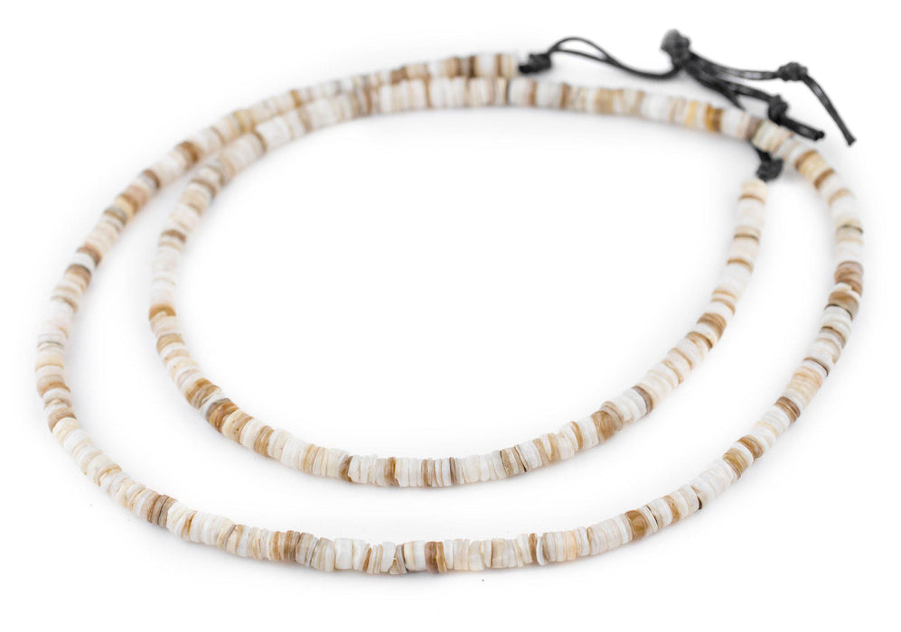These white color heishi beads are made from natural shell. The slight variations in colors and shape of the beads will make them a fun addition to your beading project. Look carefully and you will see that each bead is unique. Individual beads measure 1-2 x 4-5mm diameter with approximately 450 beads on each 27" strand. Use them as spacers or accent beads. Take note that the length of these strands are longer than usual, and finished with a nice black cord. The rustic character of these beads is sure to add an authentic touch to your jewelry designs!