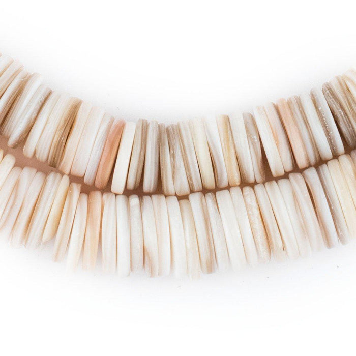 Love the neutral tones in these shell beads. They don't stick together coming off the string, either.