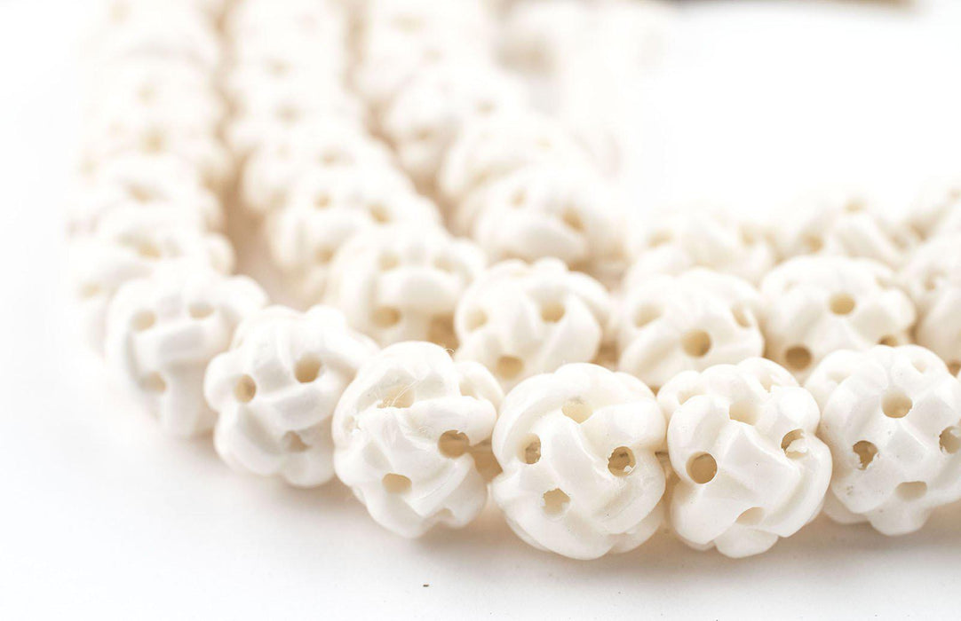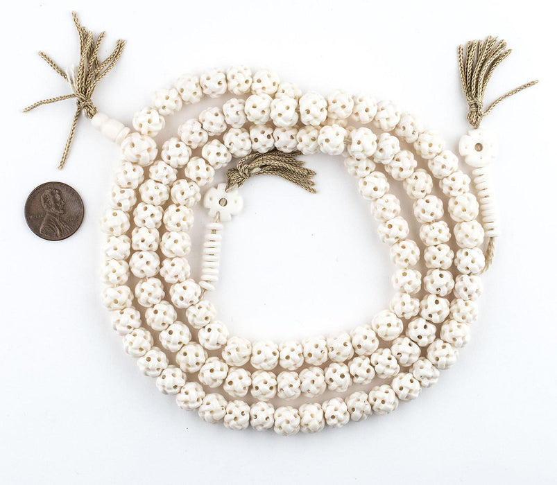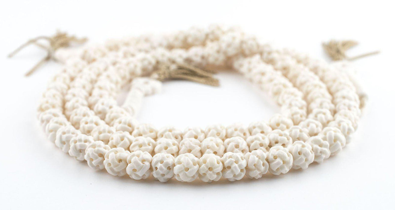 White Premium Woven Carved Bone Prayer Beads (10mm)