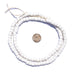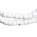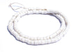 Checkout this beautiful strand of white sandcast beads from Ghana, West Africa. The process of making these beads is unique to Africa and has been used for over 1000 years. Pulverized glass of various colors is poured into a clay mold, using a cassava stem for the bead's hole. The mold is placed in a furnace and heated until the glass particles congeal without actually melting and the stem burns out. The Ghanaians have been making beads in this manner since the 1600s.