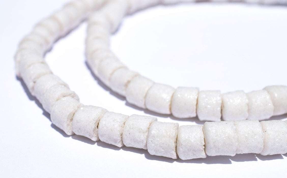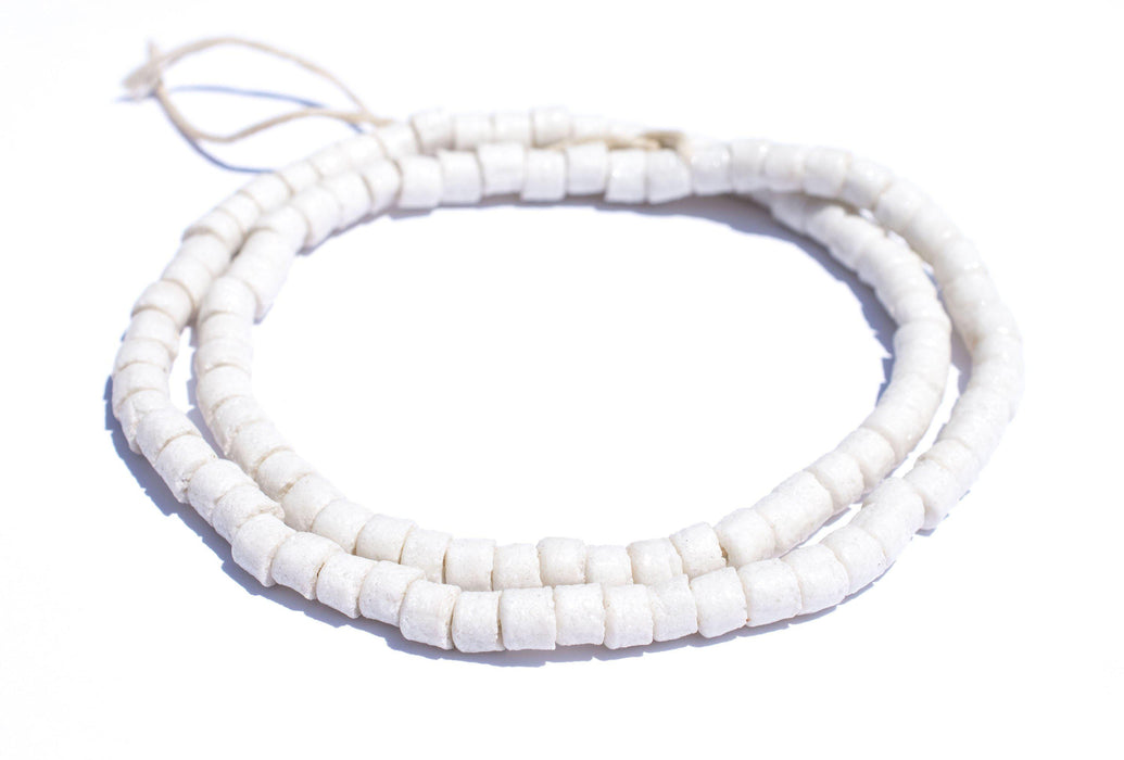 White Sandcast Cylinder Beads