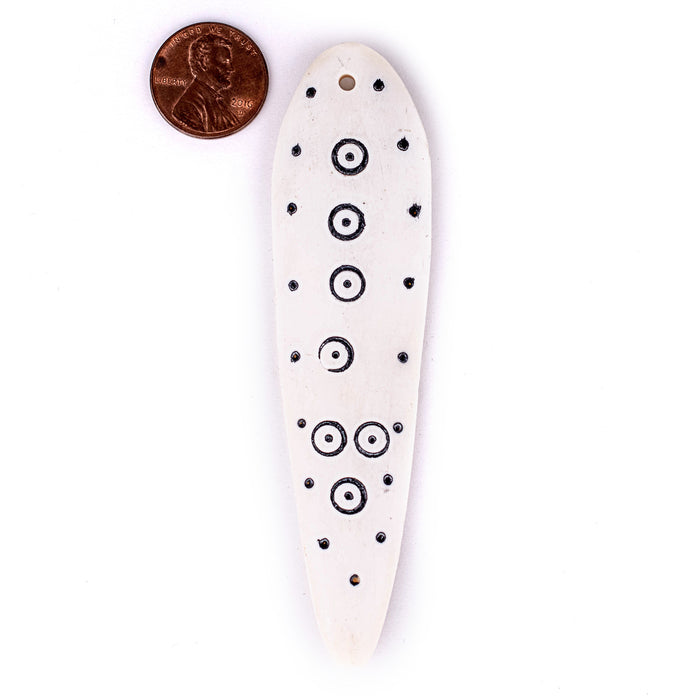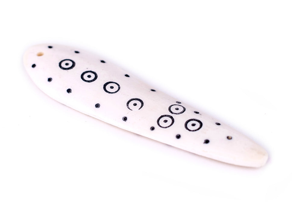 This unique hand made shaman pendant is fashioned with a traditional geometric pattern. Pendants such as this are intended as protection from the evil eye and are worn in some traditional cultures of East Africa. Each pendant is a little bit different and measures approximately 22mm wide, 5mm thick, and 97mm in length. Use it as a focal piece or simply put on a string and wear as a necklace!