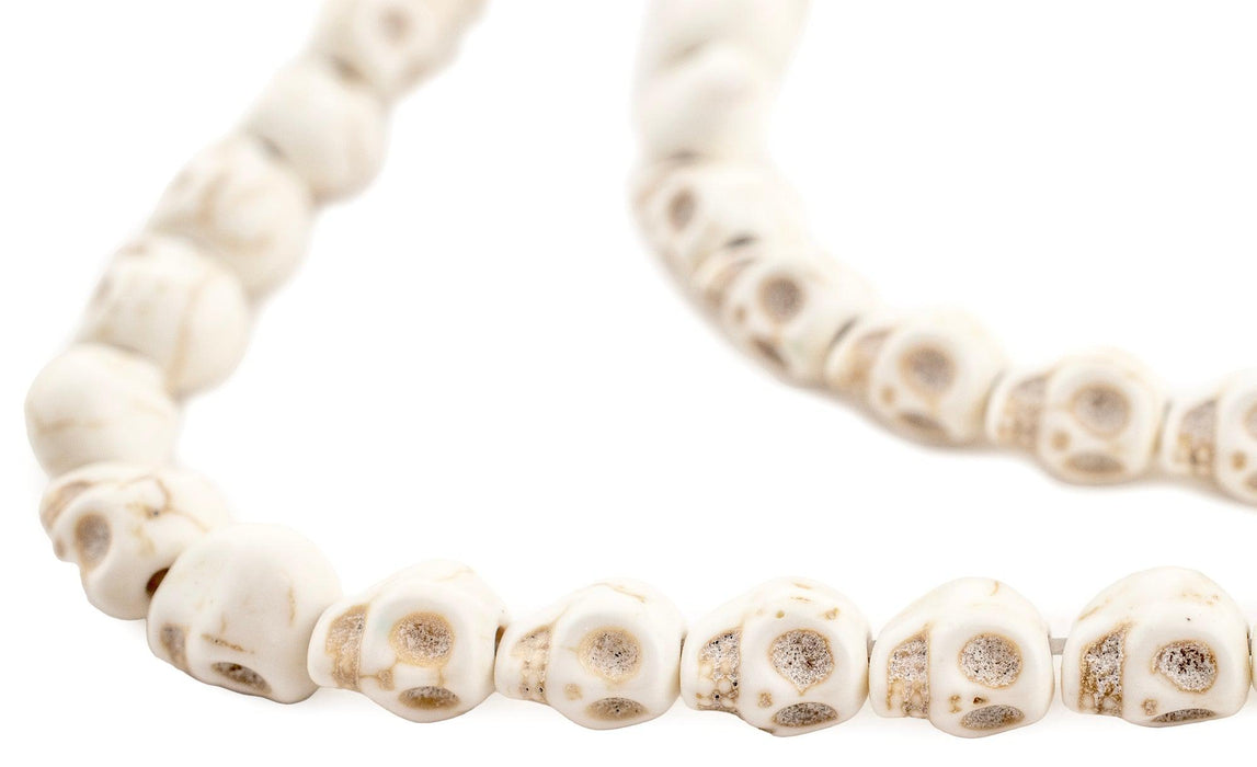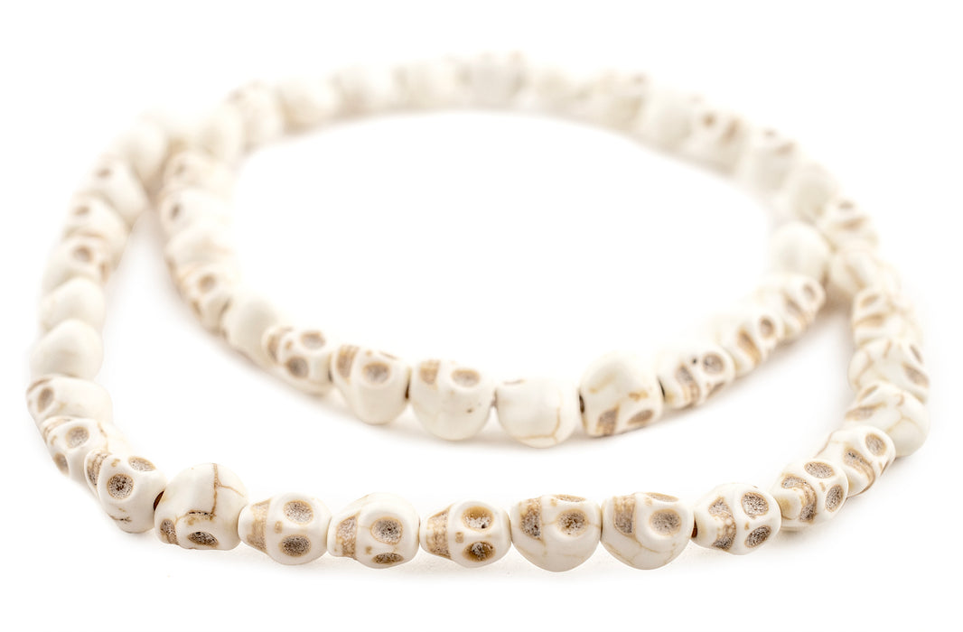 These Skull Beads have a fun and playful artisan feel to them. The hand carved look of these skull beads can help provide the perfect amount of edginess in your jewelry design projects. The marbled look each skull bead has creates a unique texture that's sure to grab attention. Great for Halloween inspired craft projects and for designers with a more punk design style. Each bead measures about 8 x 6mm with a hole size of approximately 1mm. You will receive a full strand measuring roughly 15". Grab a strand or two for yourself today.