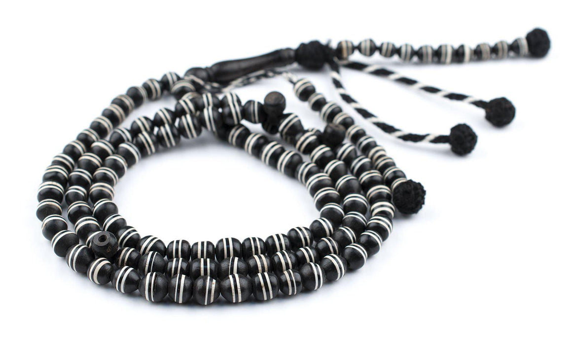 White Striped Inlaid Ebony Arabian Prayer Beads